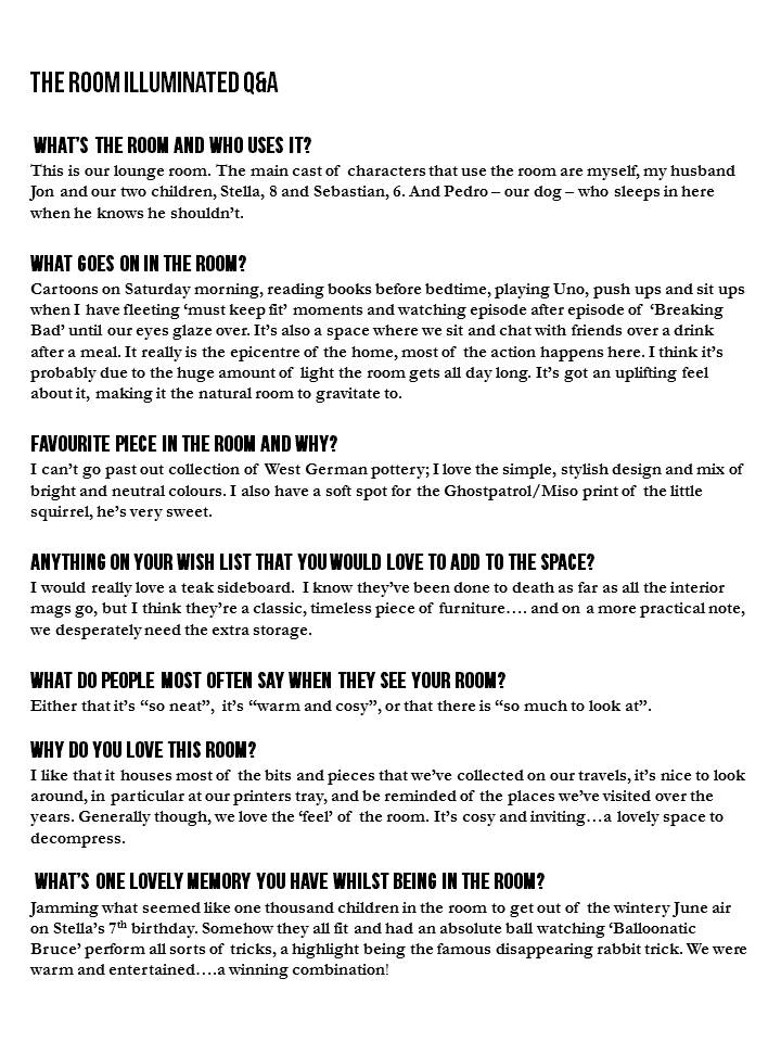 Room 1 – Kate and Jon’s lounge room (Melbourne, Victoria)