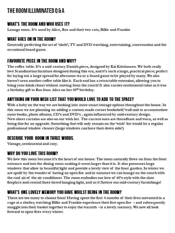 Room 2 – Alice and Ros’ lounge room (Melbourne, Victoria)