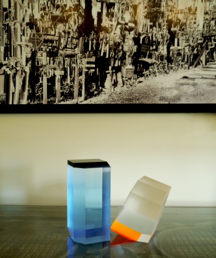 The artwork is by Melbourne artist, Min Simankevicius. It’s a photo of the ‘Hill of Crosses’ near a city called Siauliai in Lithuania. It has special significance for Lina as it’s the city that her grandparents lived in where her mother grew up.