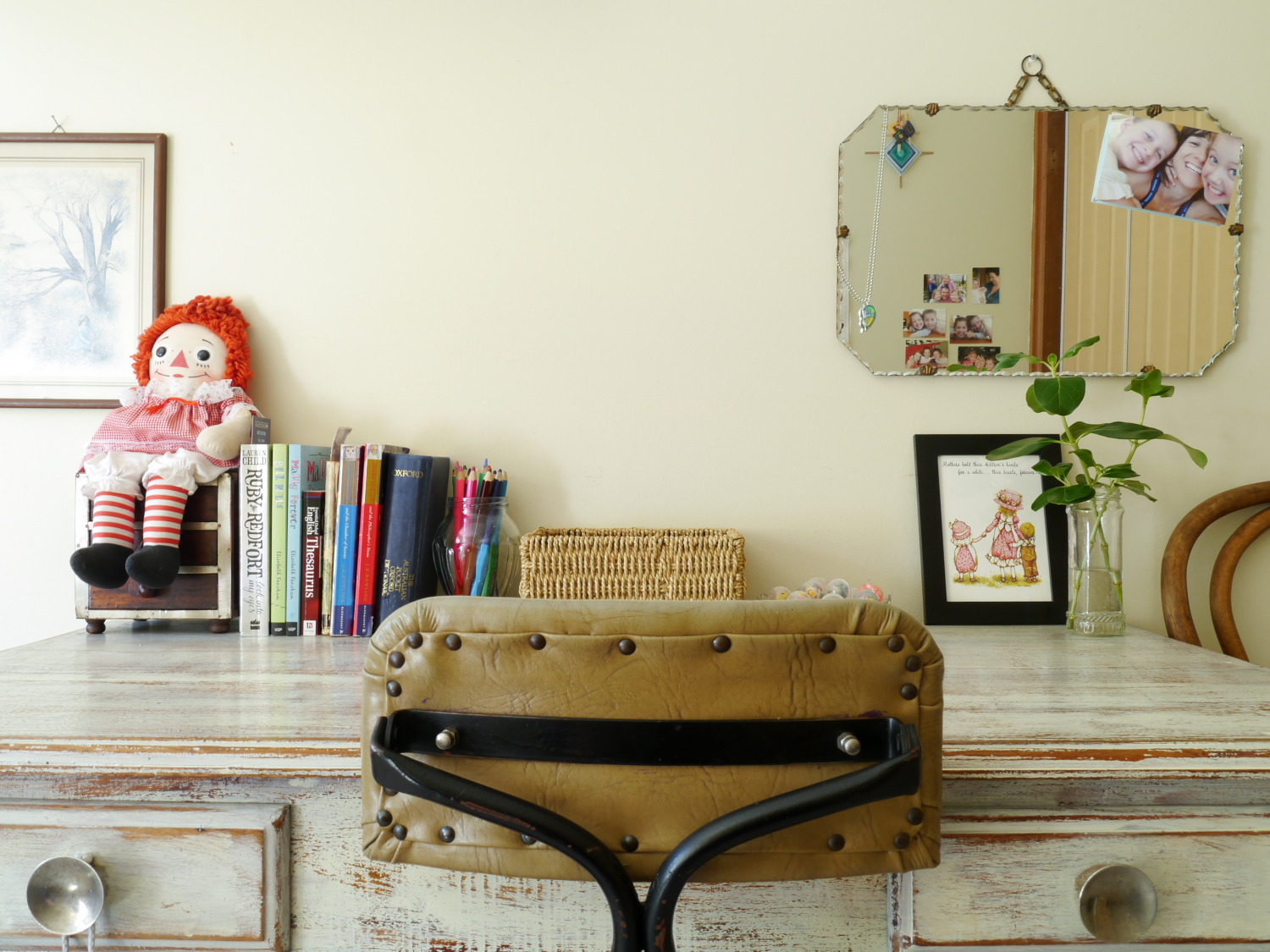 The desk chair was bought from Ebay by Emilia’s mum, ” It swivels, it’s heavy and a bit rusted. I love it”.