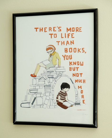 Emilia’s mum describes this print as “totally embodying Emilia’s thoughts around books; reading is like nourishment for her.” Emilia goes on to add, “there’s heaps of time for reading, but then you need to do other things…. and then you can do more reading….”