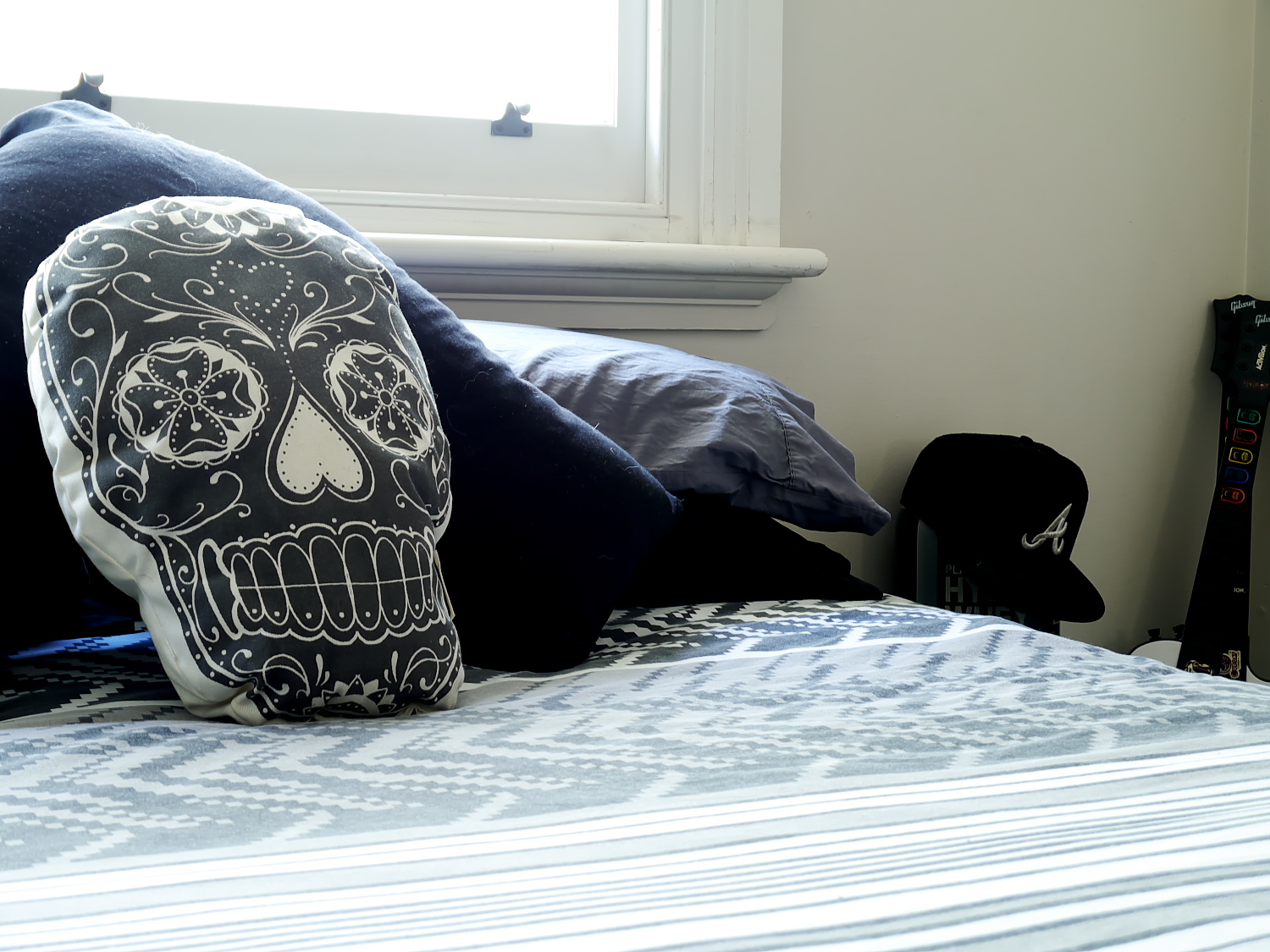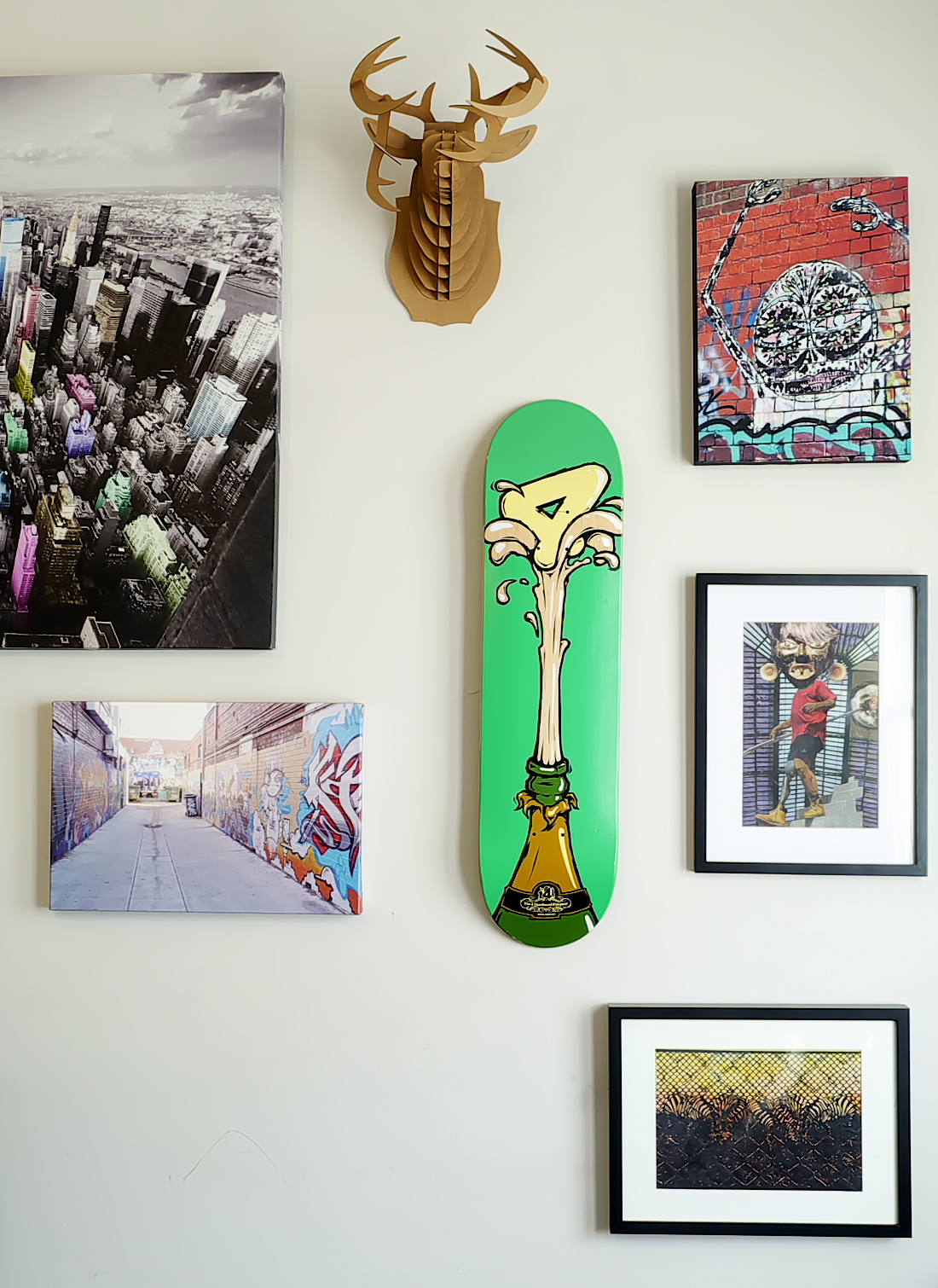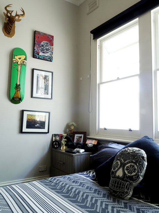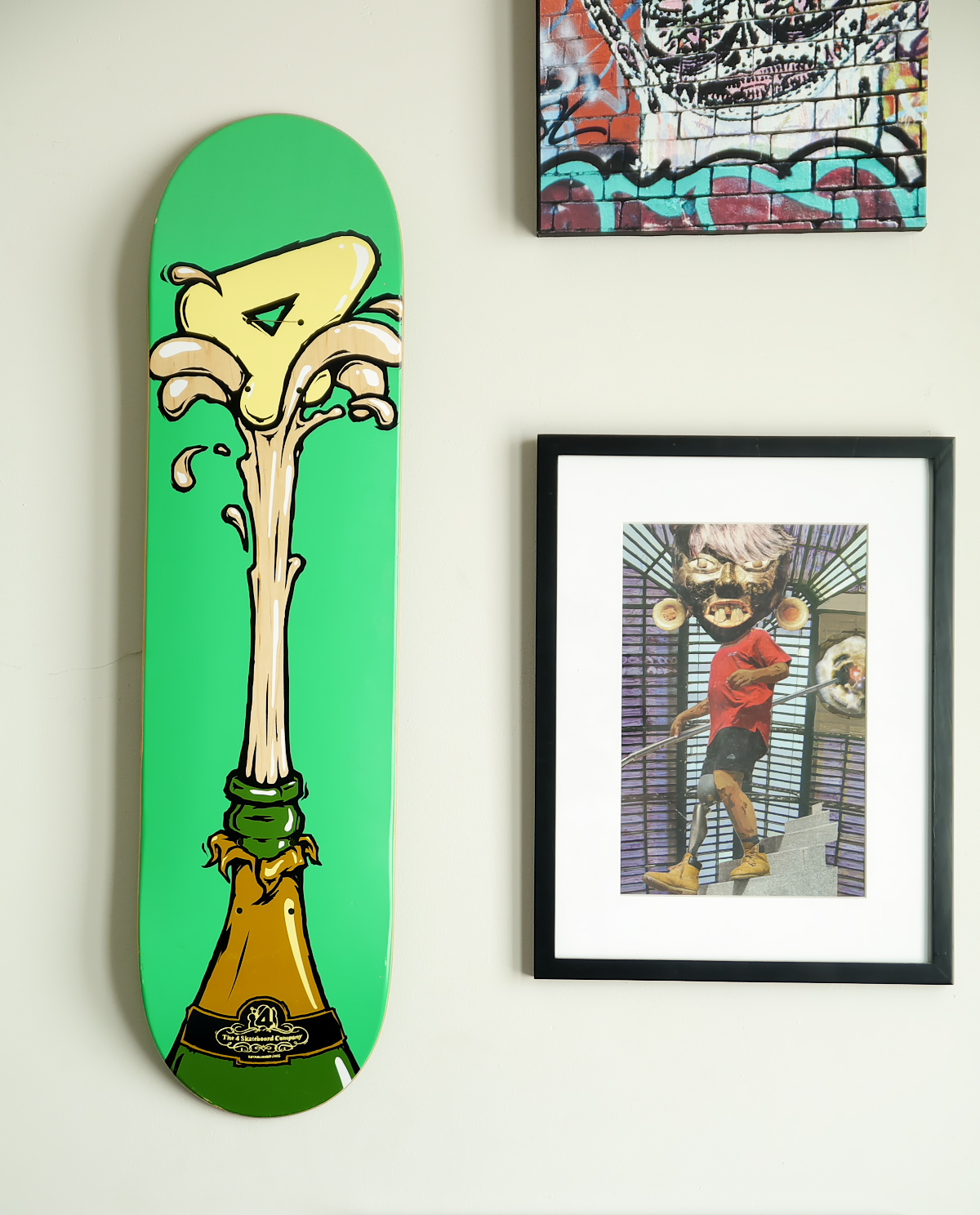 When Christopher was younger,he was a keen skateboarder. His mum mentioned this fact to one of her customers one day, who happened to be a skater and they gifted this skate board to him. Christopher liked the image so much, he decided to turn it into an artwork for his wall.