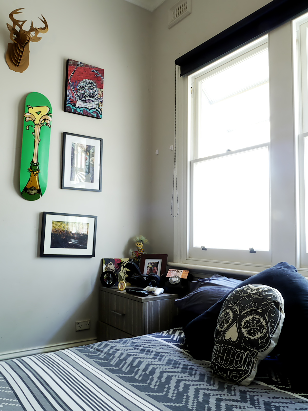 The cardboard deer head is Christopher’s favourite piece. It was a gift from his sister when she returned from her overseas travels.