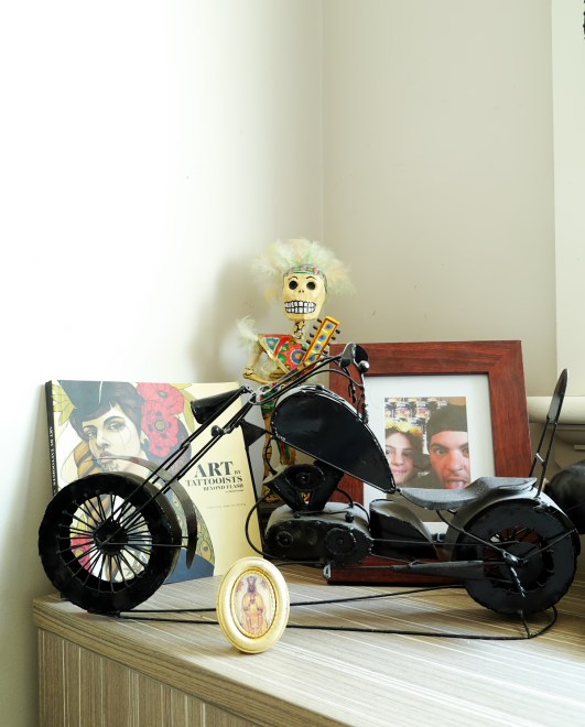 The motorbike was a gift from Christopher’s sister Livia, bought on her travels through South America. “She knows I love motorbikes, she carried it in her backpack for ages…not bad.”