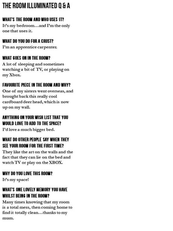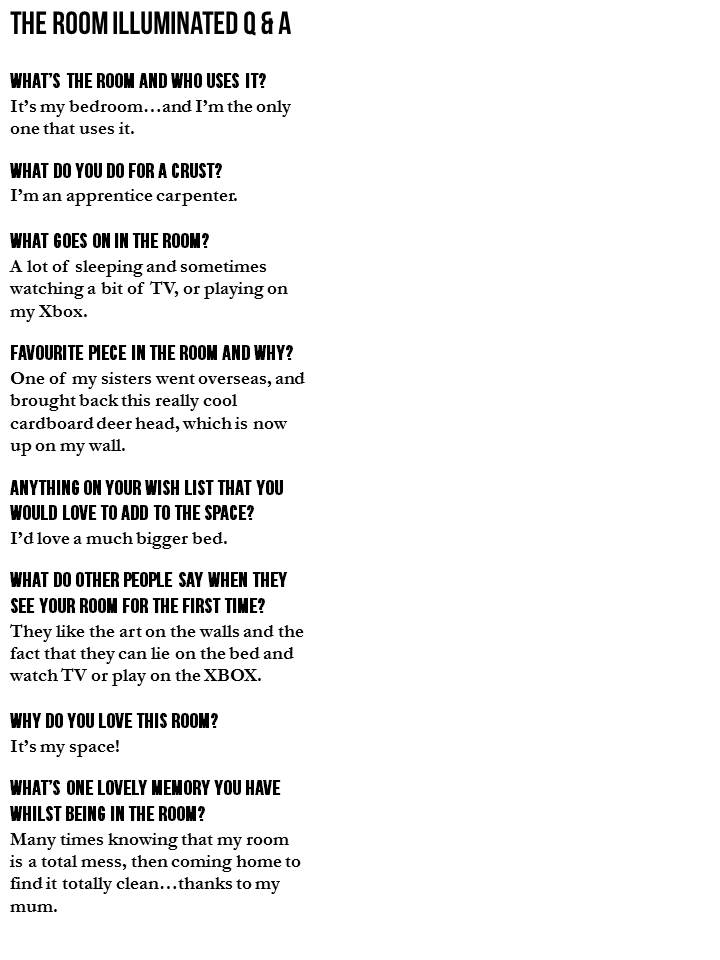 “I used to have a really old lamp shade in the room that was very ugly. One day my mother and sister came home with this one. Better.”