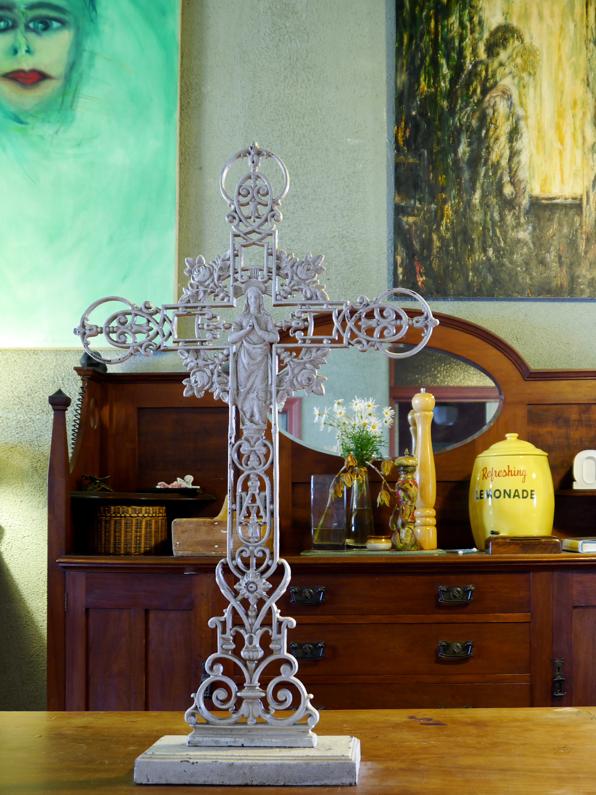 The crucifix, thought to be from Brazil, came from ‘The Factory Antiques’ in Dromana. “Gale, who buys and sells the antiques and collectables has an amazing eye.”