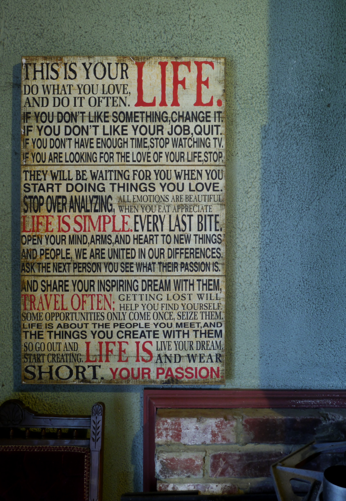 “The ‘Life’ poster on wall reminds me to keep it simple. I love to complicate if given too much time.”