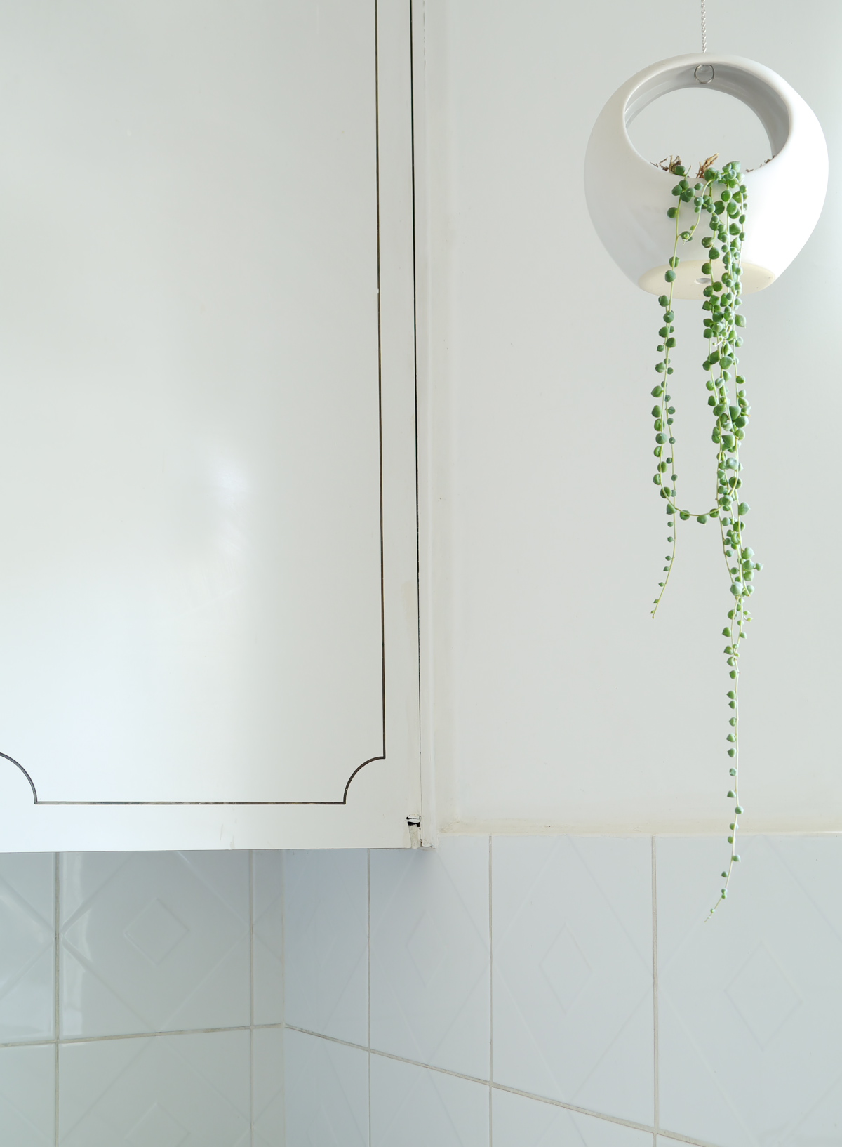 Petrina’s beautiful little hanging garden is very happily placed by the generous kitchen window, soaking up the abundance of light that streams through on sunny days.
