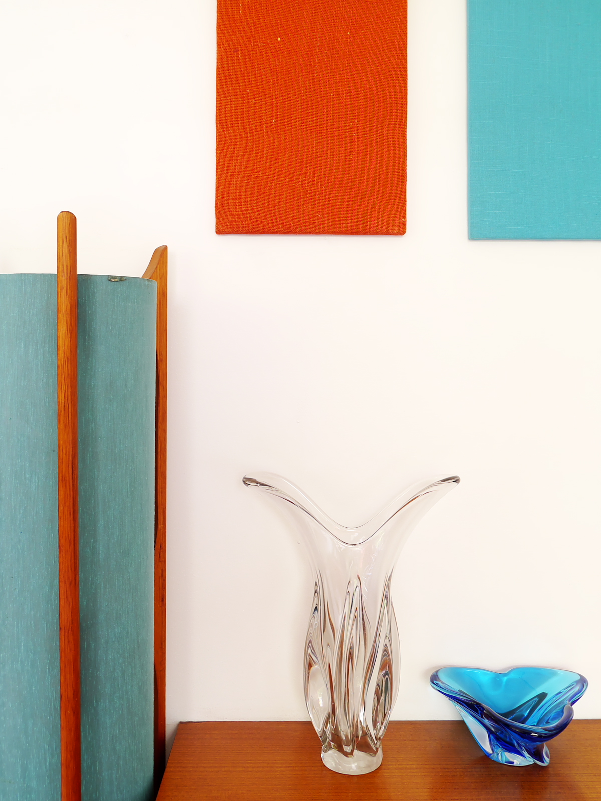 All these pieces were op-shop finds. “These three pieces were all found in opshops. I love the Italian ceramic vase in the middle. One side is yellow the other orange.”