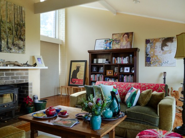 It’s a peaceful room, literally a sitting room! We deliberately don’t have a TV upstairs because we like to sit in quiet reflection amongst the trees. It’s a space of quiet beauty.