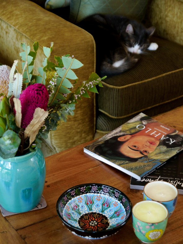 I’d like to change up the lamps, I love the custom lamps and shades at Bowerbird Collections in Brisbane. I’d also like to create more of a feature around the fireplace using a deeper ochre on the walls. But at the moment, it’s one step at a time!