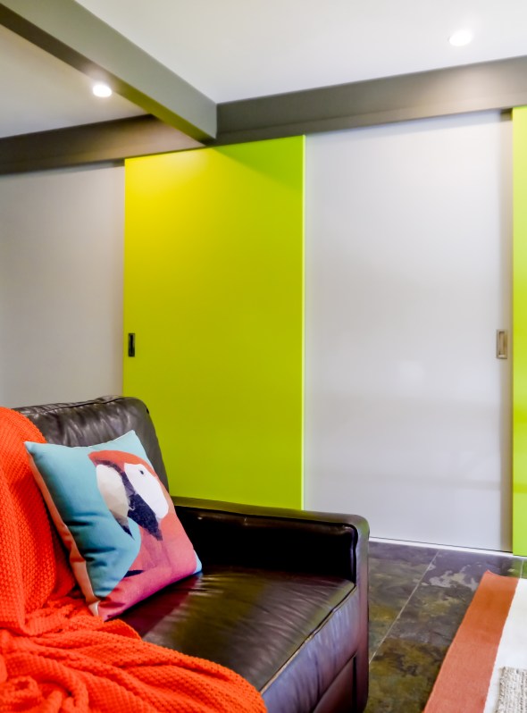 “It is full of happy colours and every day when I walk into the room those green doors greet me, and my heart sings!”