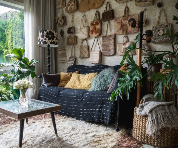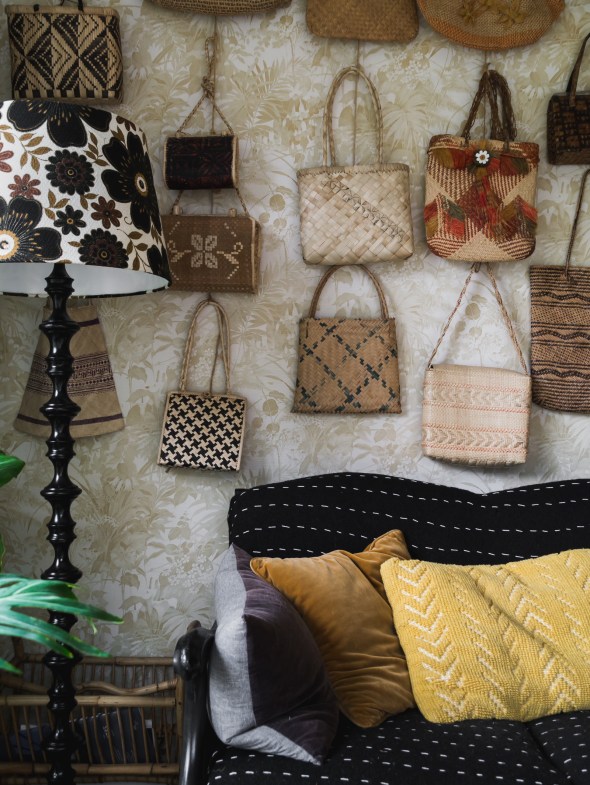 Woven baskets are just one of the many collections displayed in the home. Victoria has made many of the baskets herself.