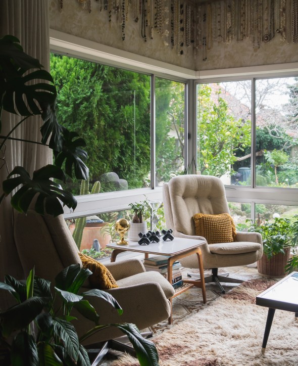 “I love the light, the windows and the wallpaper. It is the perfect fit for my collections and plants.”