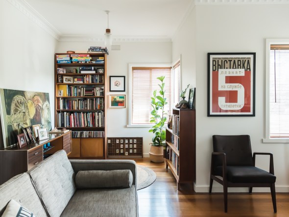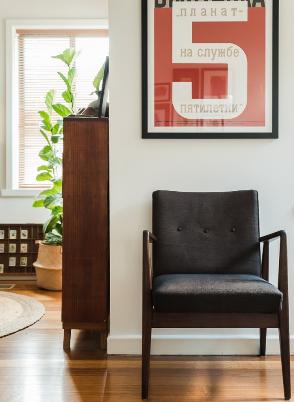 J: It was the lounge room (still is…) but now that we’ve had an extension, it’s aka the ‘front room’. The back room is for the kids to watch their movies and have friends over, while Kate and I snuggle-up up front.