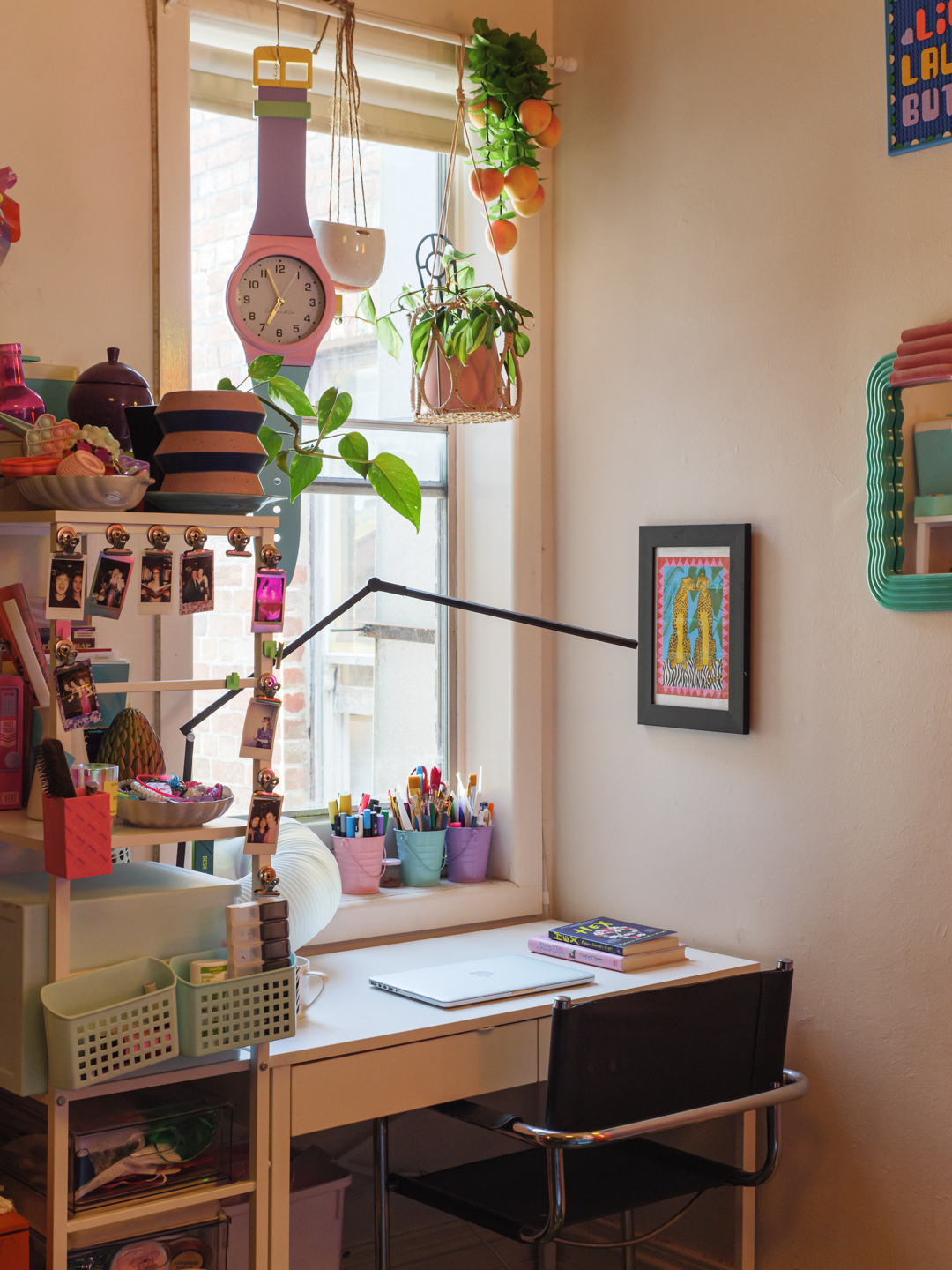 People usually remark on how colourful the room is, how there’s so much to look at-whether that’s a compliment or not depends on the person! The room tends to have a strong effect on people either way, which I really like. Two of my favourite things friends have said about the room are 1. It feels really happy in here and 2. You can tell an artist lives here (that last one is very validating). I’m just as happy when people say they love it as when they say something like “I couldn’t have this much stuff everywhere but I love that for you!”.