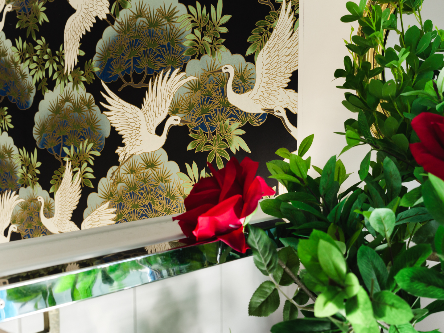 Mel’s favourite thing right now – “My Coordonne Sakura wallpaper. It’s described as a dance of white cranes seen gliding over the treescape. It’s a statement piece for Betty and looking at it each day brings me joy.”
